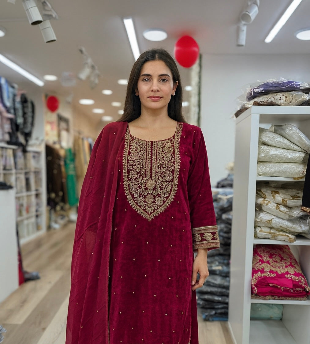 Brit 3 piece velvet_7053 ladies suit red B48
