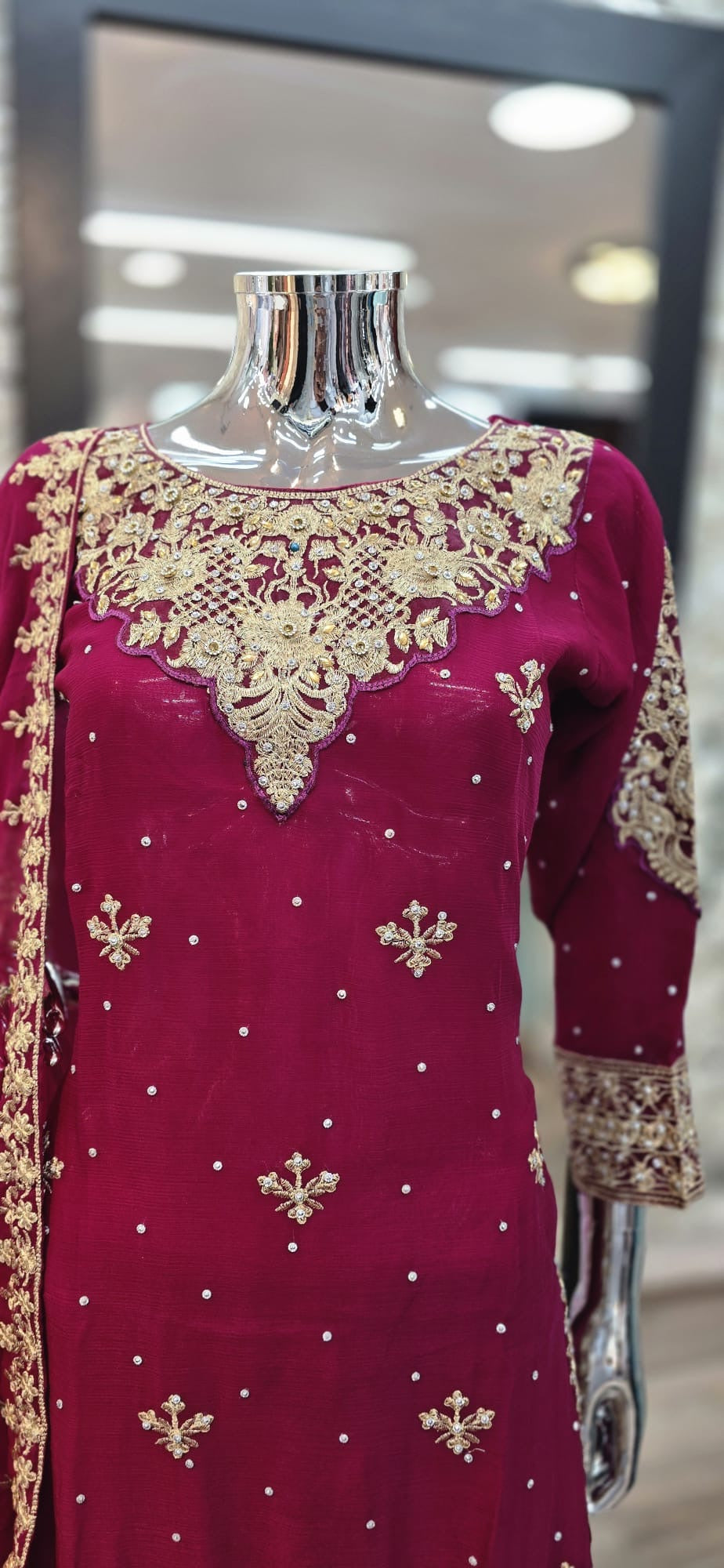 Brit Mother and Daughter 3 piece Chiffon_100293 magenta B100