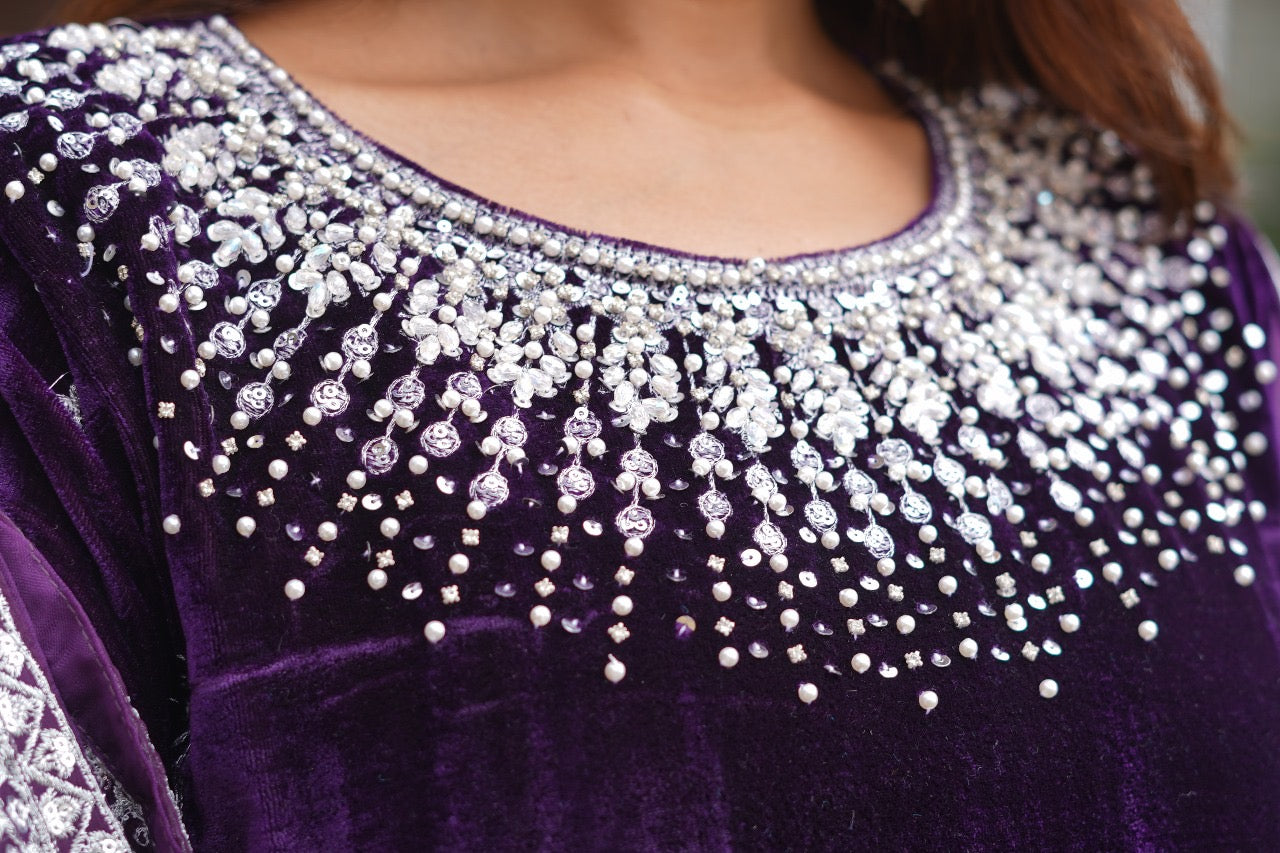 Brit Valvet 3 piece with chiffon dupata _3024 Purple B276